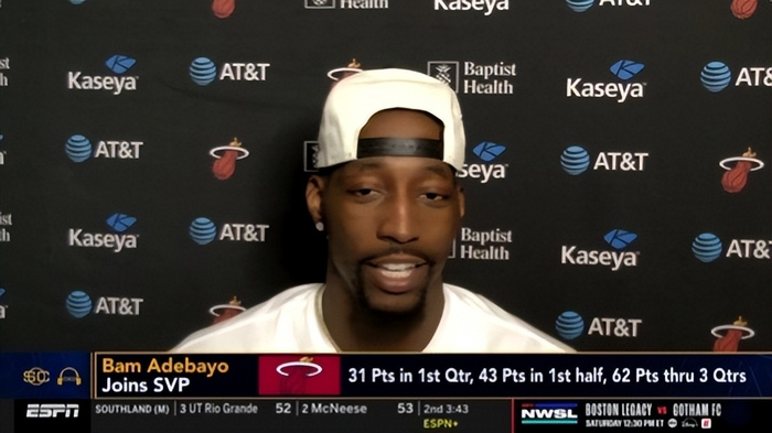本场比赛,阿德巴约出战42分钟,投篮43中20,三分22中7,罚球43中36,砍下83分9篮板3助攻2抢断2盖帽。赛后,热火主教练斯波尔斯特拉接受了采访。